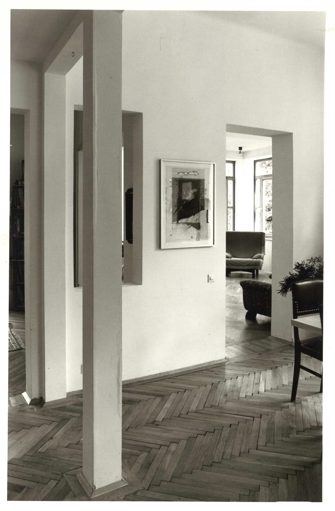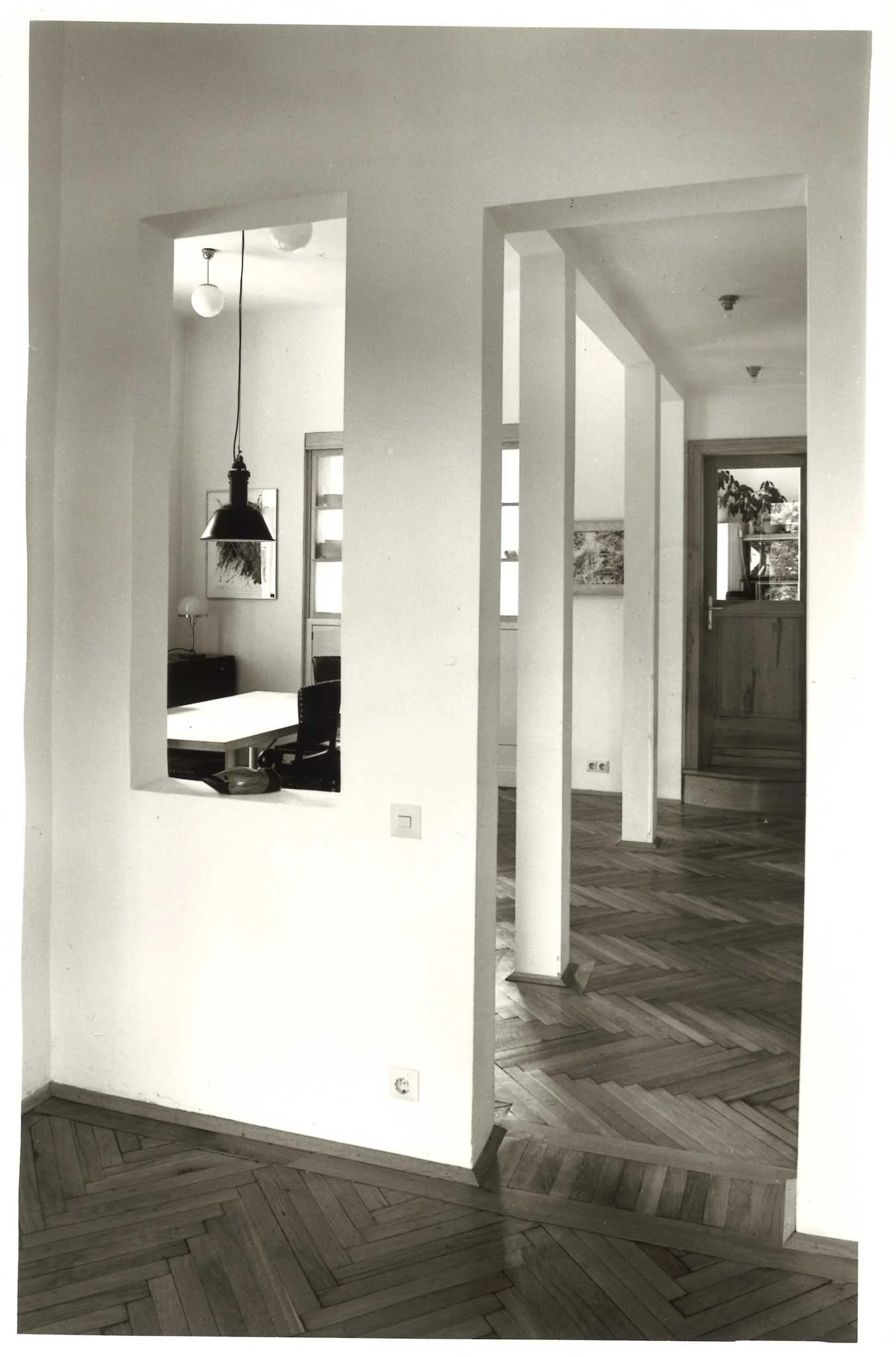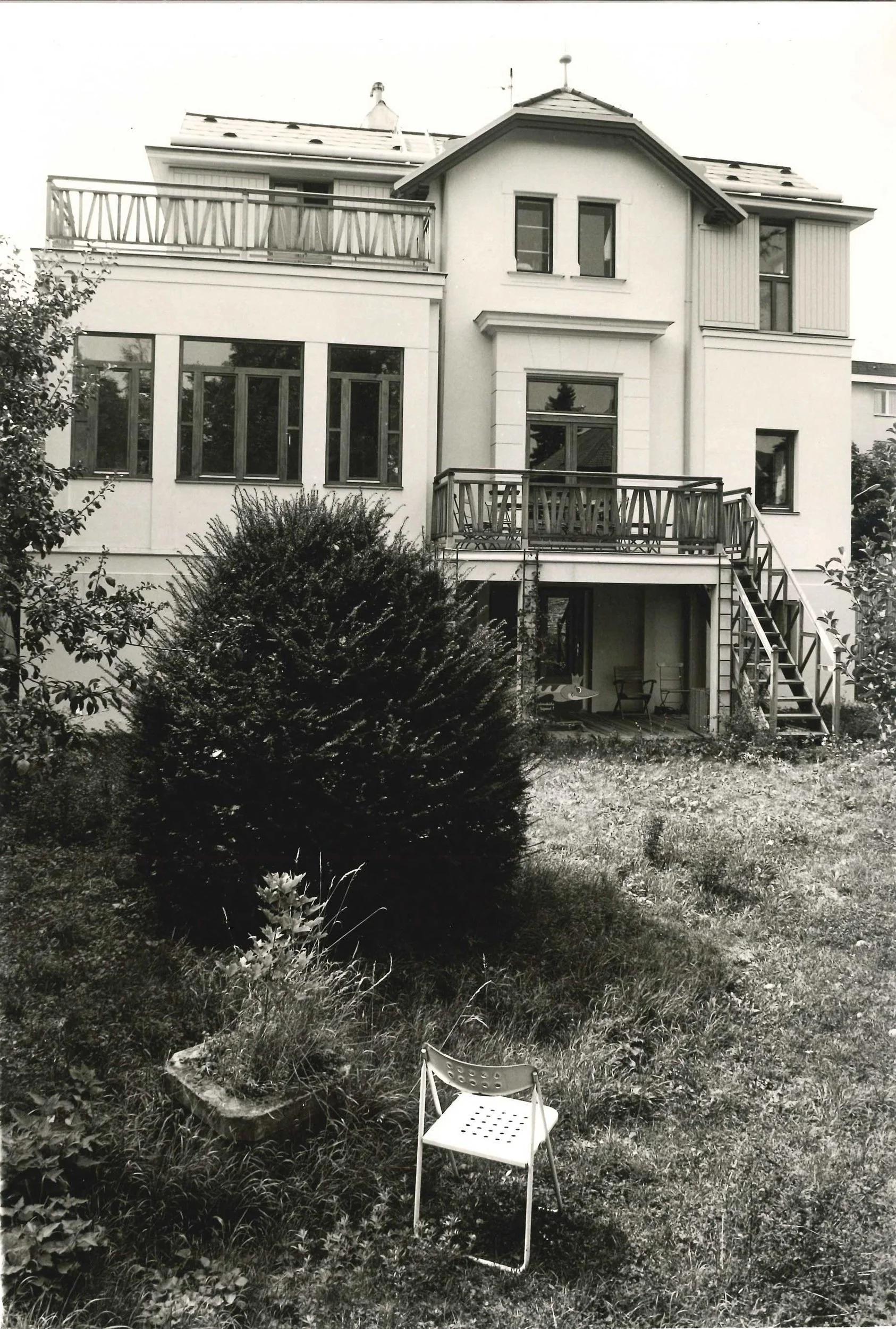 Wobei die „unsymmetrischen Seitenrisaliten im Gebäudeinneren eine neue, quer zum Garten liegende Achse bilden und damit die Orientierung zum Garten verstärken.